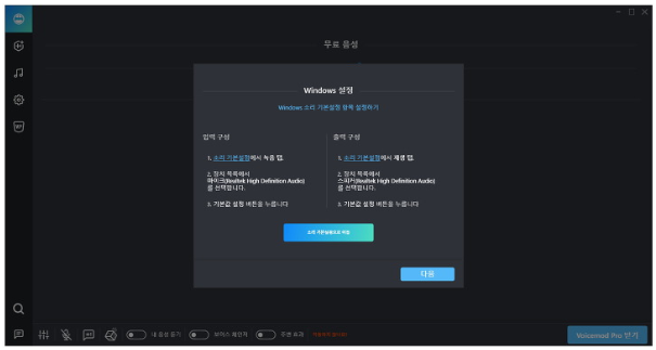 ▼ 프로그램 설정창에서 사용하실 헤드셋과 마이크 등의 설정을 세팅해줍니다.