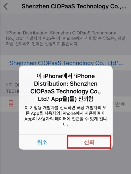 마지막으로 신뢰를 터치해주면 설치가 완료됩니다.